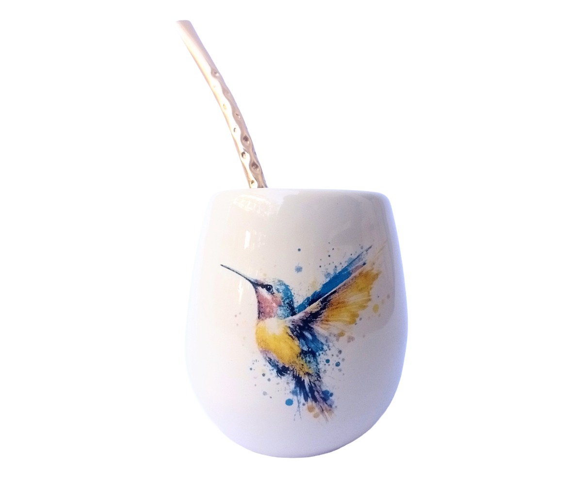 Mate de cerámica diseño Colibrí (incluye bombilla).